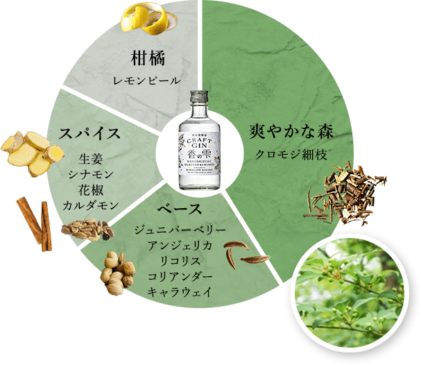 香之雫琴酒為日本養命酒製造於2019年1月發表的精釀琴酒(Craft Gin),價格較實惠的「香の雫(かのしずく)」以黑文字(烏樟)為主要成份和檸檬皮等11種植物原料,香氣如同像新綠的森林一般,令人耳目一新,使用日本中央阿爾卑斯的淨水釀製並具有細膩的甜味和令人愉悅的口感,餘韻猶存。適合作為精釀琴酒的入門,重新認識琴酒的美味。