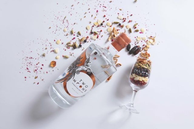 使用荷蘭進口甘蔗中性烈酒為基底,稀釋至45﹪ABV注入蒸餾器,添加杜松子、芫荽籽、甘草、荳蔻、鳶尾根、陳皮、粉紅胡椒、零陵香豆、香草、杏仁,並將新鮮檸檬皮與玫瑰花瓣置於原料籃以蒸氣萃取細緻明亮風味;整個蒸餾過程約六小時,蒸餾所得琴酒原酒為90﹪ABV,僅加水稀釋至45﹪ABV靜置三週後裝瓶,每批次產量為一百瓶,緻月琴酒(Two Moons Signature Dry Gin)於2019年十二月開始販售。