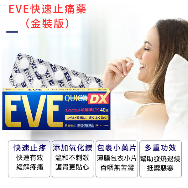 EVE止痛片頭痛牙痛生理痛經日本進口止痛藥布洛芬片溫和無刺激 40粒(金裝版)
