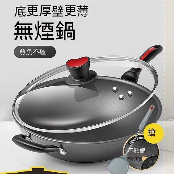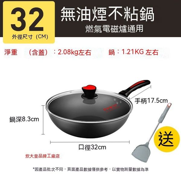 全城熱賣-電磁爐適用鍋 不粘平底炒鍋 無煙不粘鍋炒鍋燃氣電磁爐通用32cm 有蓋 送鏟