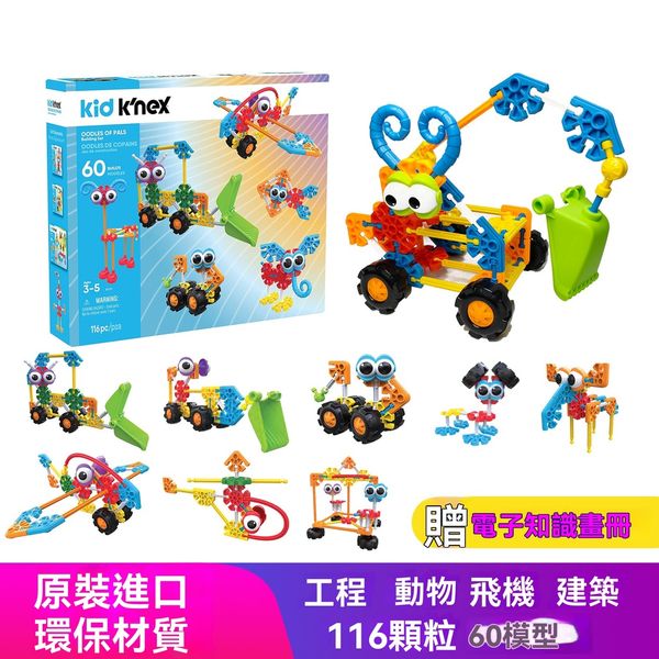 K'NEX科樂思85701大眼仔工程車動物套裝|大粒積木|3歲以上BB玩具