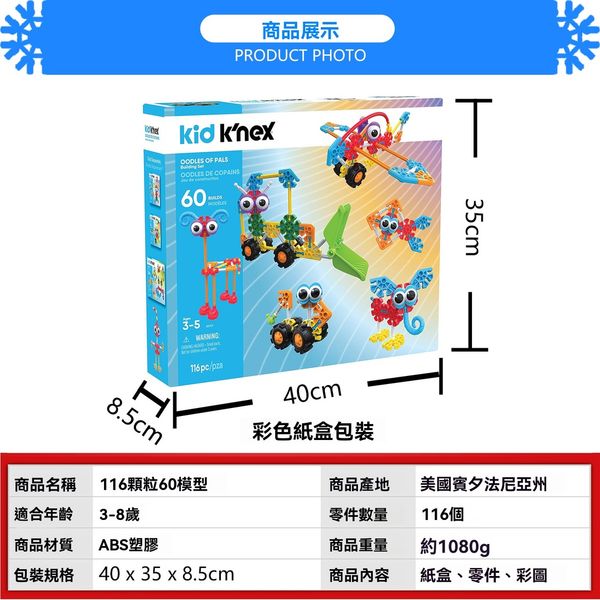 Knex科樂思85701大眼家族工程車飛機動物套裝 | 3歲BB大粒積木玩具