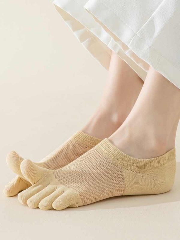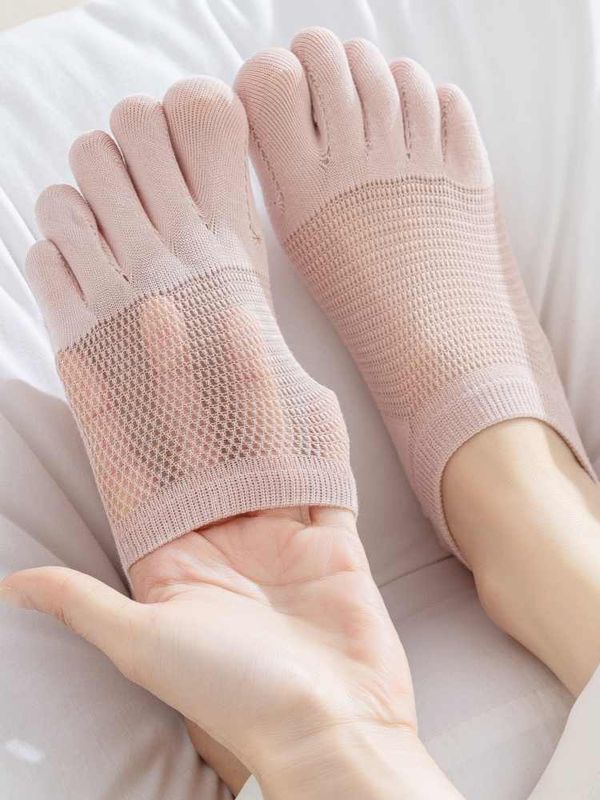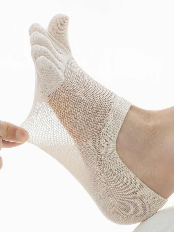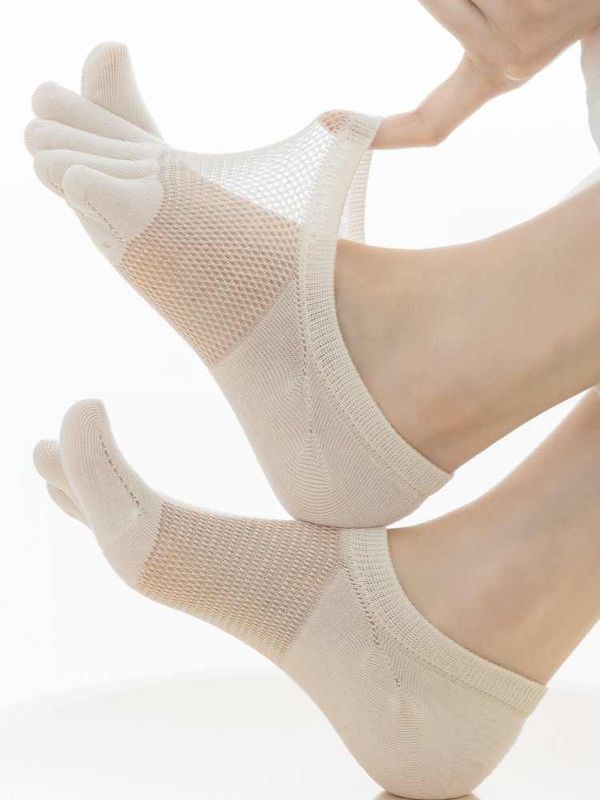 【三對裝】女士夏天五趾襪 船襪 超薄純棉網眼透氣 防滑 無骨 隱形淺口祙