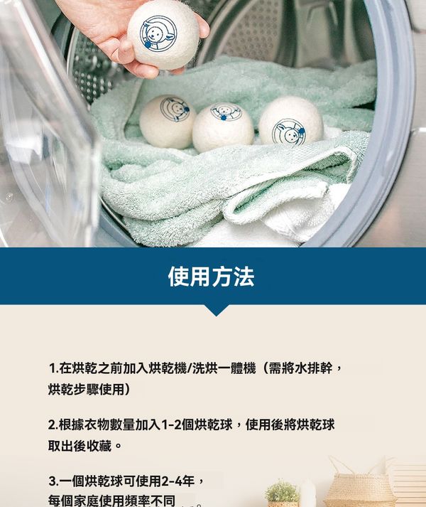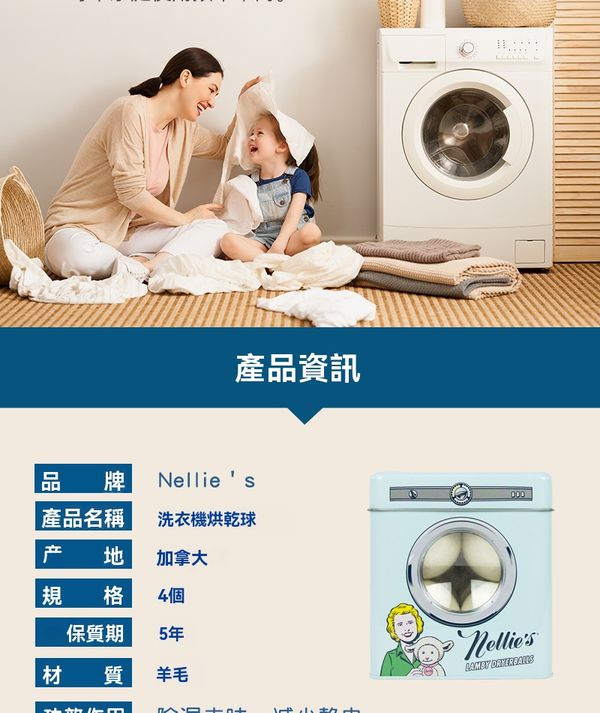加拿大 Nellies 進口純羊毛烘乾球 (4粒裝) | 防靜電・防纏繞・衣物柔順・除濕祛味・天然烘衣神器