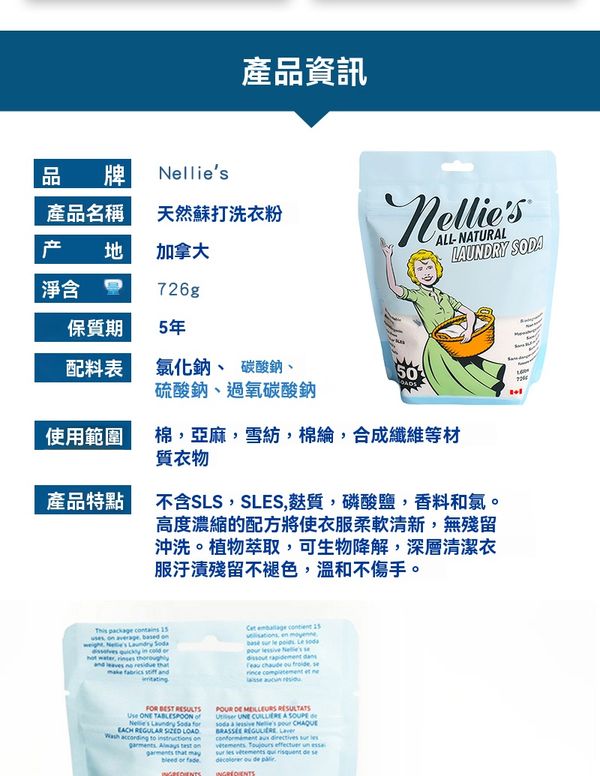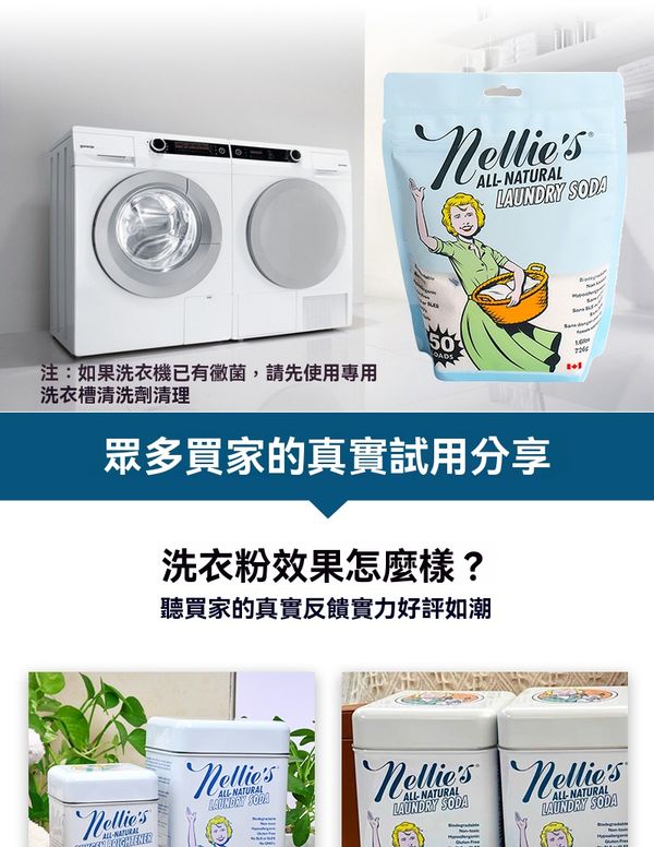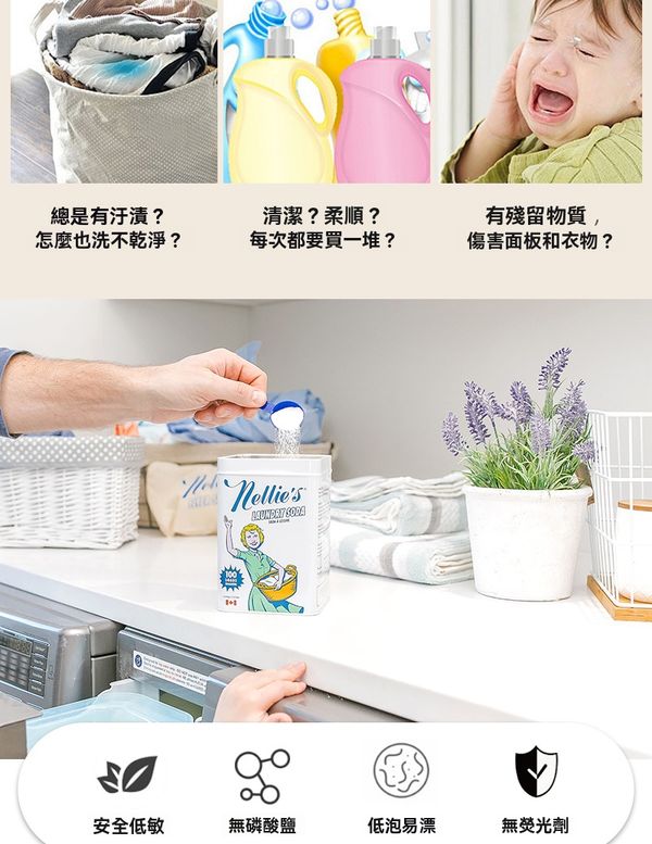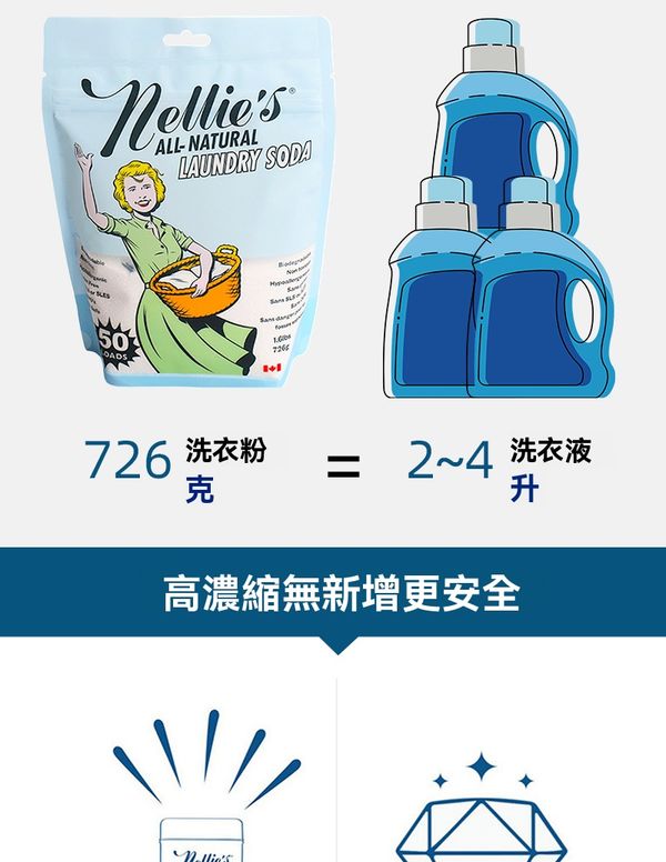 Nellies進口濃縮蘇打洗衣粉手洗機洗專用家庭裝洗衣液726g