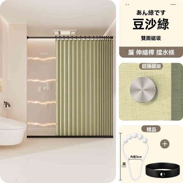 雙側磁吸:米白色【簾+杆子+擋水條】適用80-100cm牆距【簾寬100*高180cm】