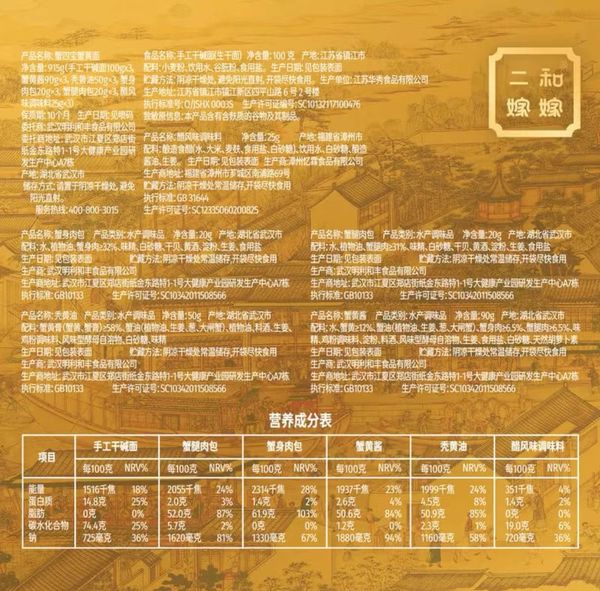 每份包含180g嘅全蟹料包;全蟹四寶加倍鮮,約六隻螃蟹一碗麵。