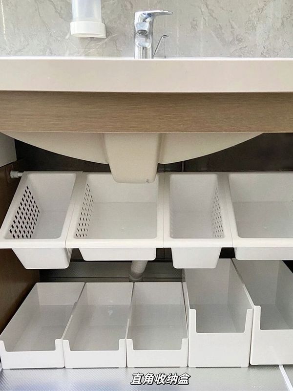 廚房櫥櫃內分層隔板 置物架收納筐 免打孔伸縮杆 收納架 下水槽收納板隔板1块 货号:4434