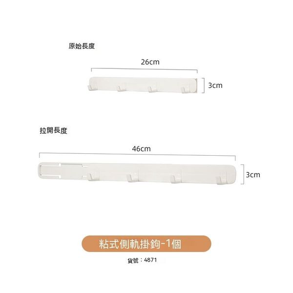 廚房櫥櫃內分層隔板 置物架收納筐 免打孔伸縮杆 收納架 下水槽收納板【柜内侧粘贴】滑轨挂钩1只 货号:4871