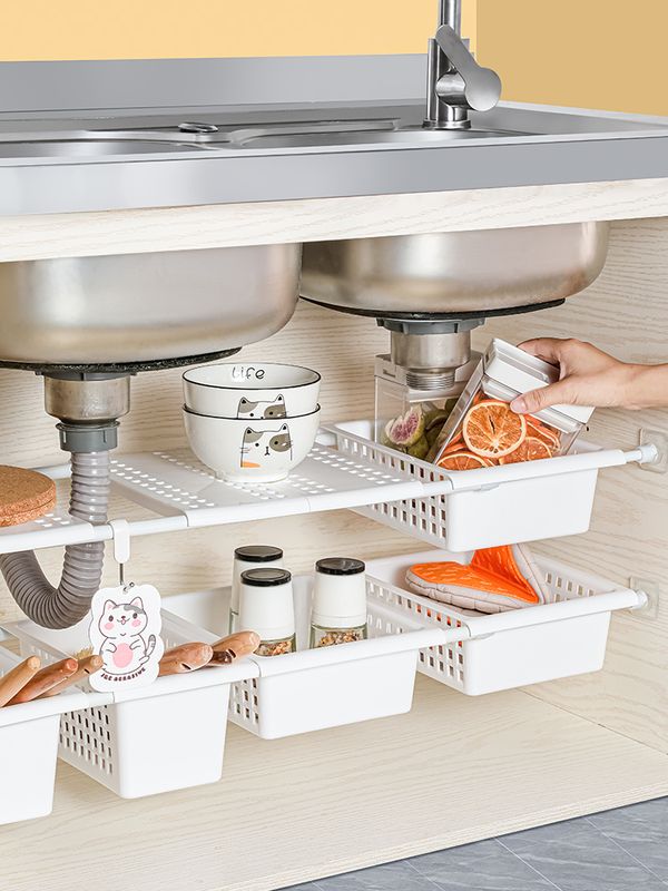 廚房櫥櫃內分層隔板 置物架收納筐 免打孔伸縮杆 收納架 下水槽收納板卡通挂夹2只【猫狗各1枚】 货号:4929挂钩、挂夹