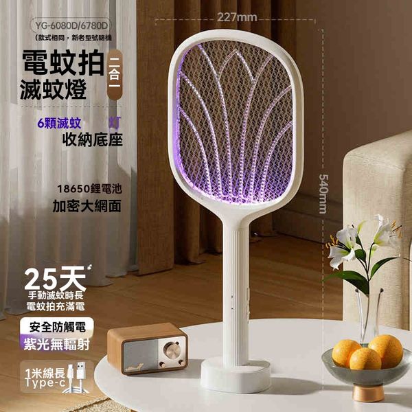 充電式電蚊拍 – 家用超強力滅蚊燈二合一,電網拍打蚊蟲神器【4粒誘蚊燈 + 收納底座 + 鋰電】USB充電