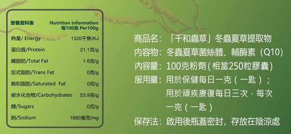千和蟲草100克粉劑(相當250粒膠囊)