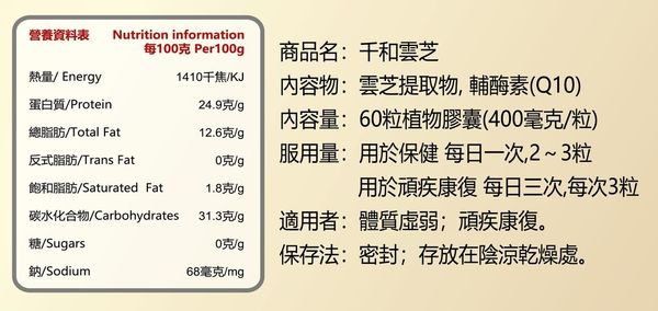 千和雲芝膠囊裝(60粒裝)