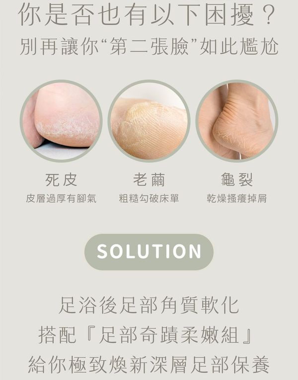 ‧ 足浴後搭配『足部奇蹟柔嫩組』跟粗糙腳搿掰