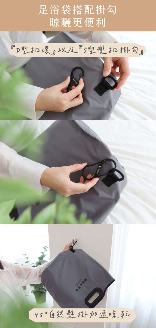 ✔足浴袋搭配s型掛勾,晾曬好方便!