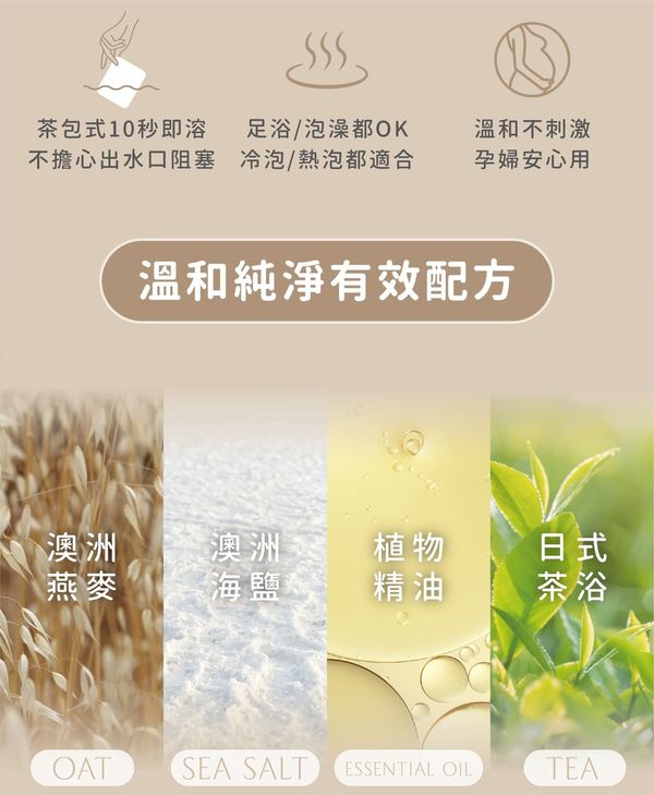 『輕輕纖盈』足浴美肌SPA套裝【SPA溫感足浴袋+7入美肌燕麥浴鹽包】居家SPA腳底按摩、穴道泡腳