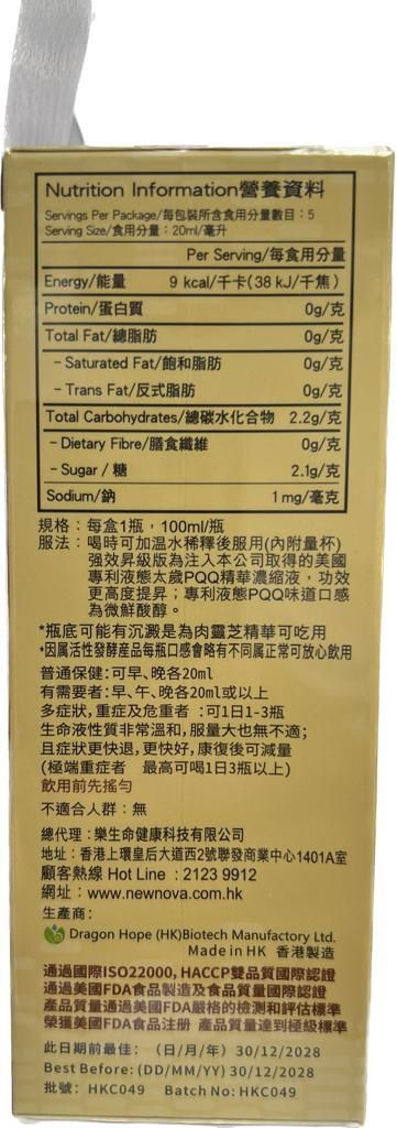 2.每支100ml生命液含有全天然液態的PQQ最高達360,000ng和液態的NMN380,000ng,還含有全液態活性SOD,穀胱甘肽,CoQ10,核酸、Omega3,6,9, 多醣, 三帖類等成份,猶如一隊營養軍團,全球獨有