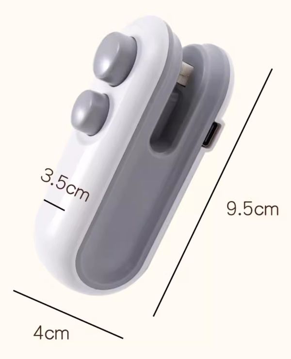 描述 : USB充電 , 可用作封口及開封兩個模式 , 內嵌式切刀 , 一鍵快速加熱 , 磁吸附冰箱貼 , 可放手袋 , 方便攜帶 .