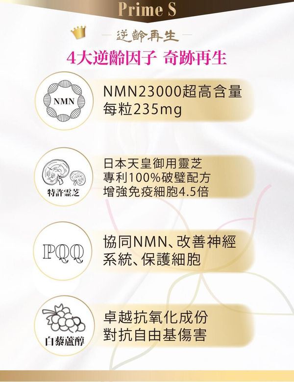 Prime S NMN 23000+ 4合1 天皇靈芝 + PQQ + 添加白藜蘆醇 日本製 抗老逆齡 提升 NAD+諾加因子 凍齡美肌 抗衰老
