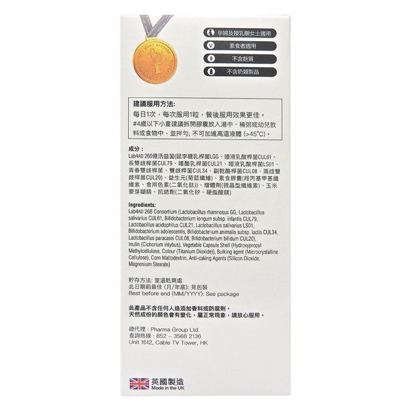 選用獨有 Lab4 益生菌作基礎,超過30年的科研及英國權威大學支持,於多個世界級臨床測試中,證實於腸道健康及免疫系統上都有多種好處。