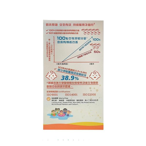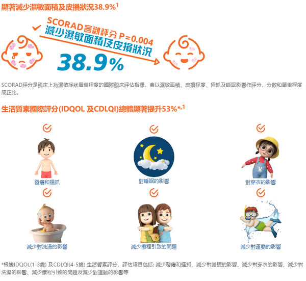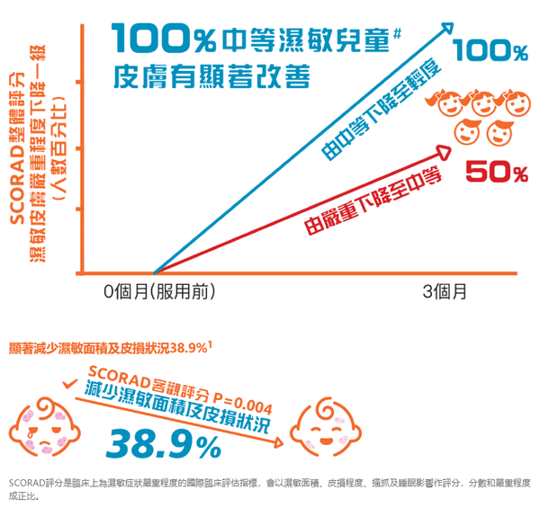 - 持續服用三個月對對中等及嚴重濕敏兒童效果顯著