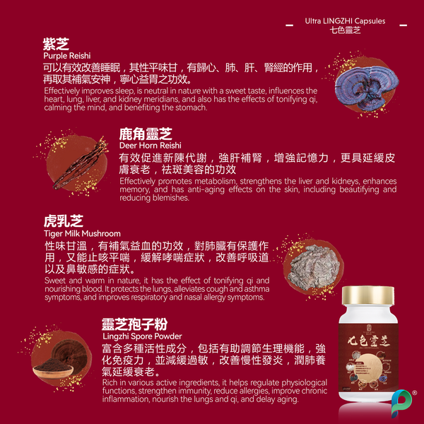 富含多種活性成分,包括有助調節生理機能,強化免疫力,並減緩過敏,改善慢性發炎,潤肺養氣延緩衰老。