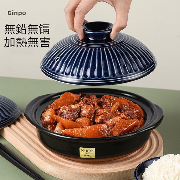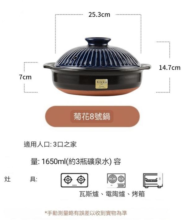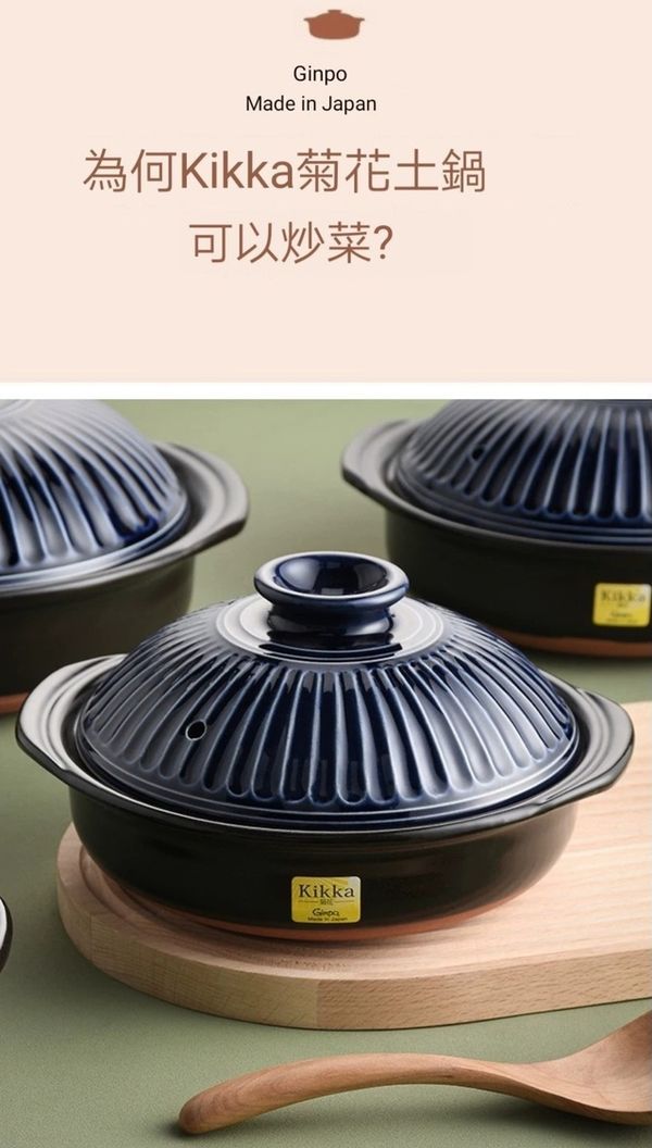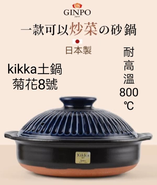 日本Ginpo萬古燒kikka菊花土鍋砂鍋米飯煲煲仔飯煲瓦煲砂煲陶土煲8號1650ml Casserole clay pot//產地:日本