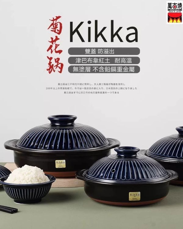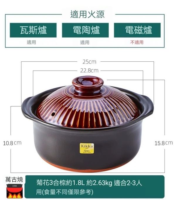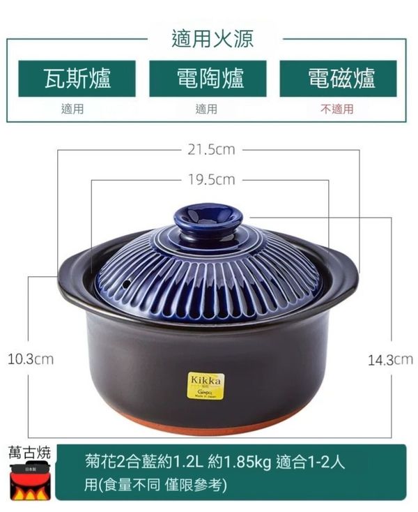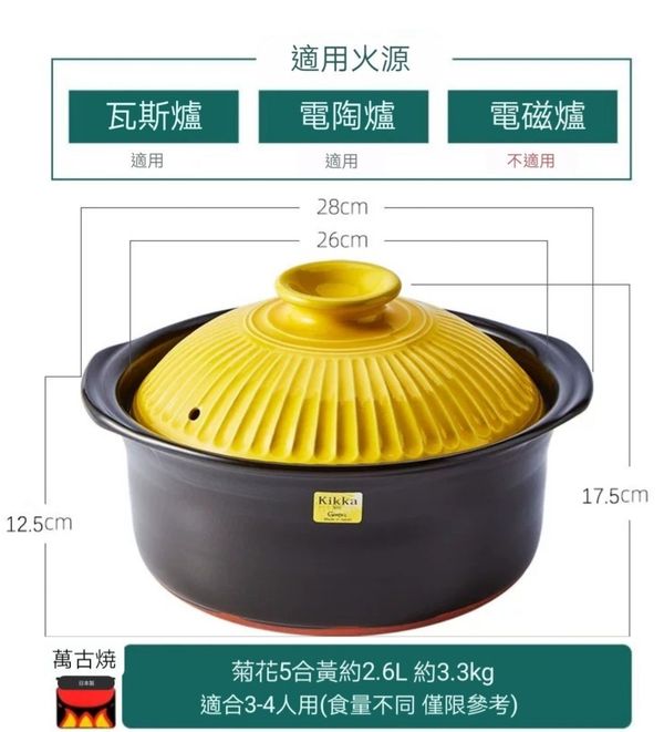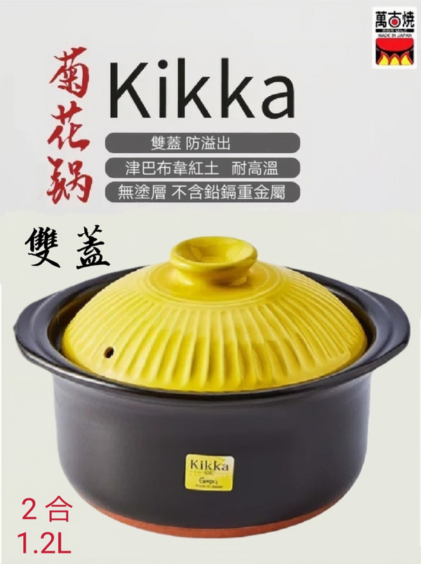 日本Ginpo 菊花kikka 雙蓋萬古燒砂鍋米飯煲煲仔飯煲土煲陶土鍋瓦煲砂煲2合黃色1.2L banko ware casserole pot//產地:日本