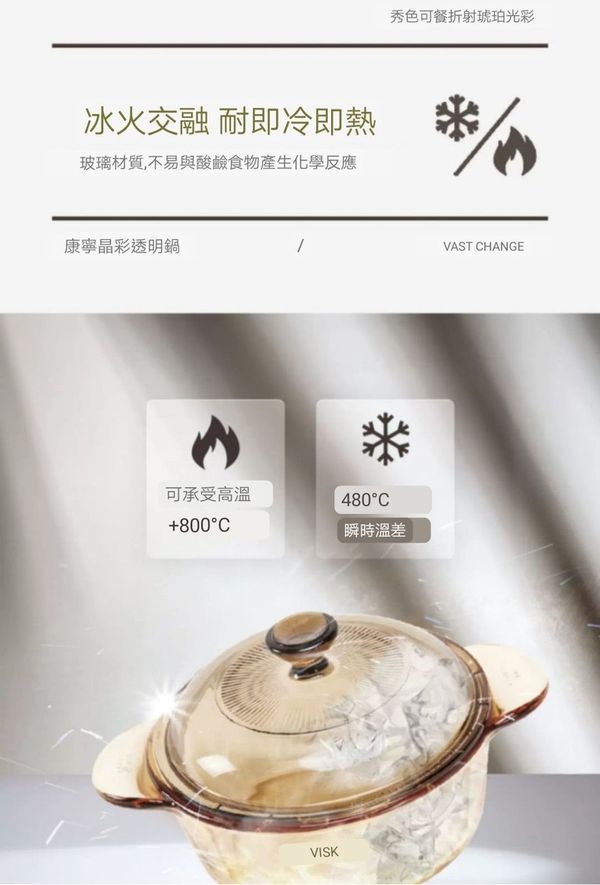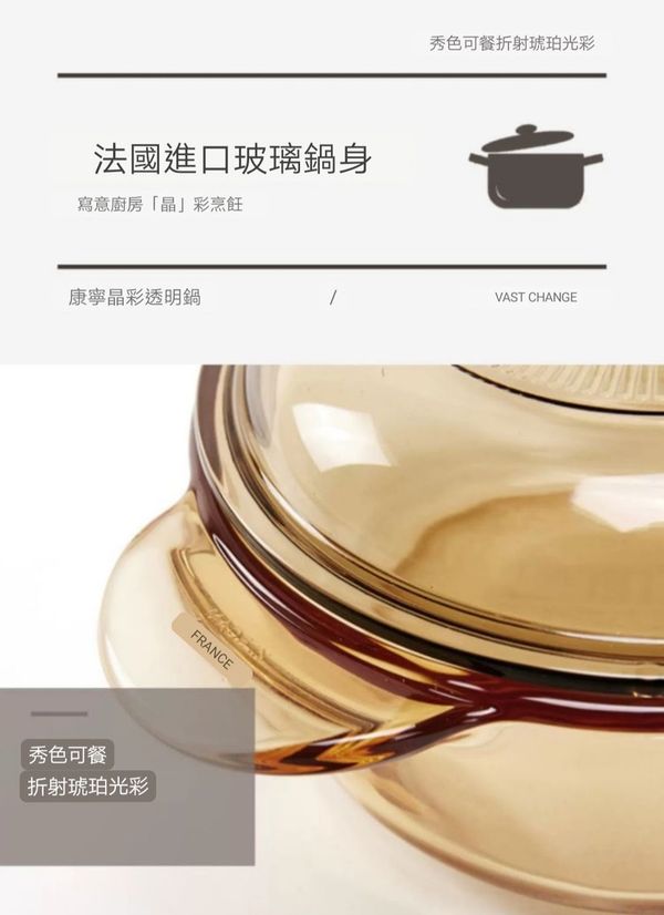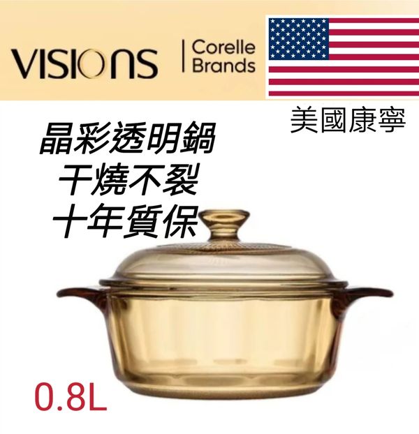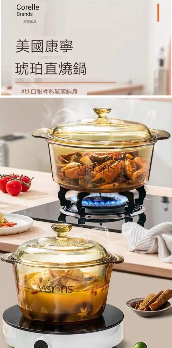 美國康寧餐具Corningware 耐高溫琥珀晶彩透明鍋高硼矽鍋砂鍋煲湯鍋燉鍋煮鍋炒鍋0.8L Amber glass pot 产地:鍋身(法國)鍋蓋(中國)