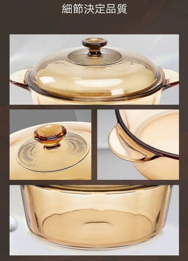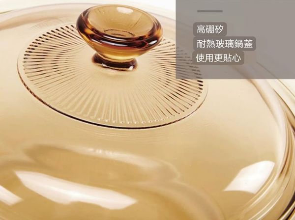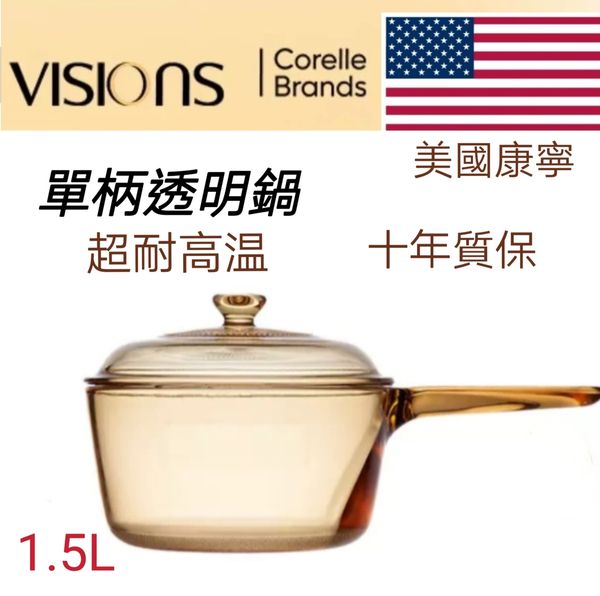 美國康寧餐具Corningware 耐高溫琥珀單柄透明鍋高硼矽鍋砂鍋煲湯鍋燉鍋煮鍋炒鍋1.5L single handle amber glass pot 产地:鍋身(法國)鍋蓋(中國)