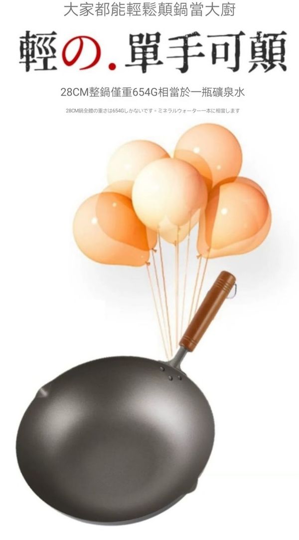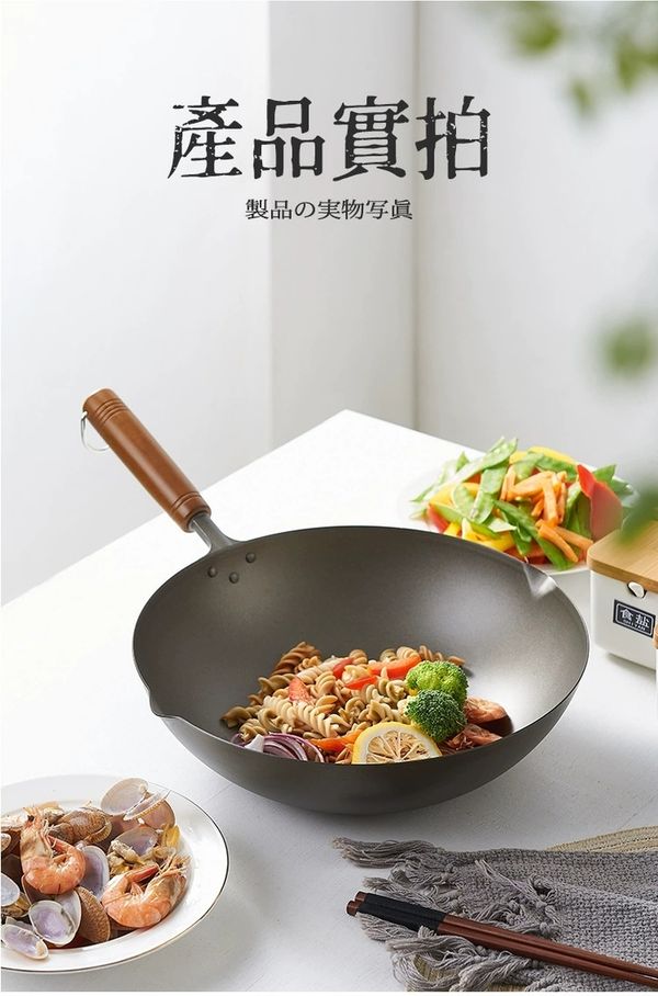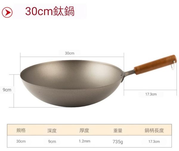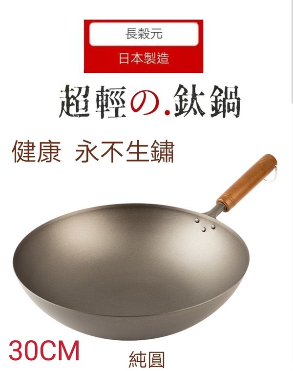 JOYWELL日本長榖元鈦鍋鈦鑊無塗層鍋鑊炒鍋炒鑊煎鍋鑊少油煙免開鍋鑊純圓形30CM titanium wok Chinese pot//產地:日本