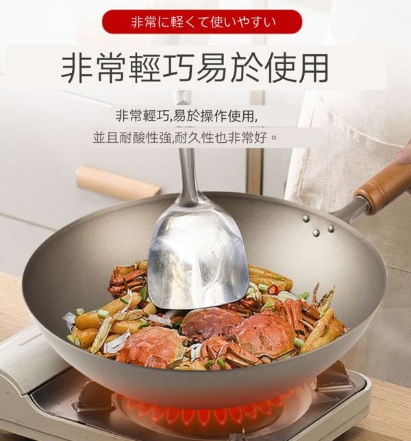 耐用性是鐵鍋數倍,且導熱能力強、中小火即可實現爆炒