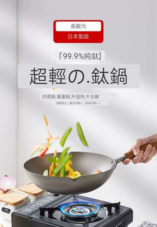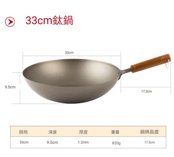 JOYWELL日本長榖元鈦鍋鈦鑊無塗層鍋鑊炒鍋炒鑊煎鍋鑊少油煙免開鍋鑊純圓形33CM titanium wok Chinese pot//產地:日本