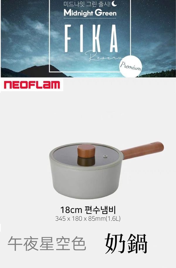 韓國neoflam fika 午夜星空色系列陶瓷不粘鍋平底鍋奶鍋湯鍋電磁爐燃氣爐通用鍋陶瓷不黏鑊ceramics soup pot milk pot wok 18CM/產地:韓國 (送:矽膠勺)
