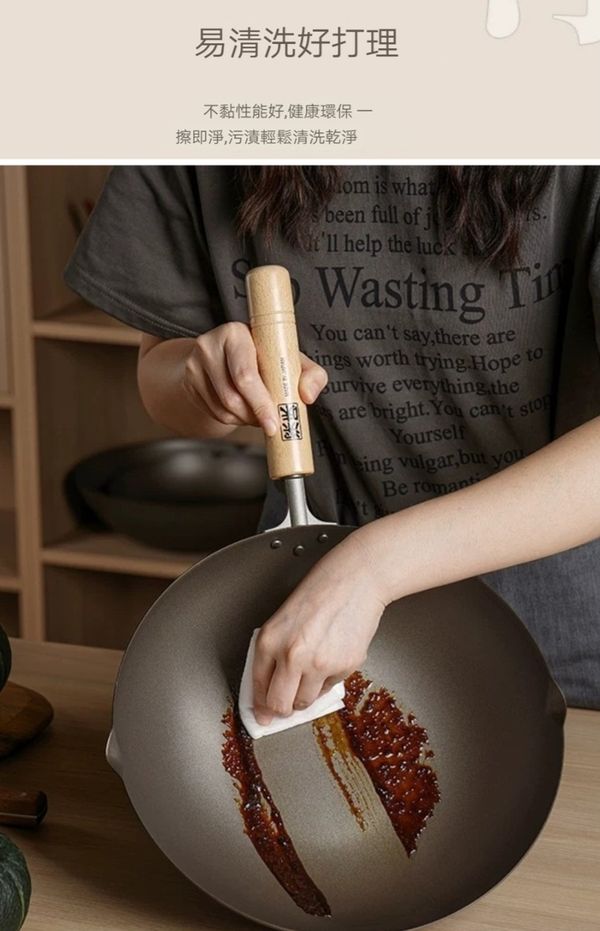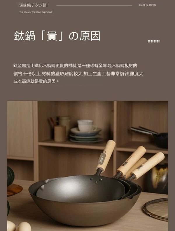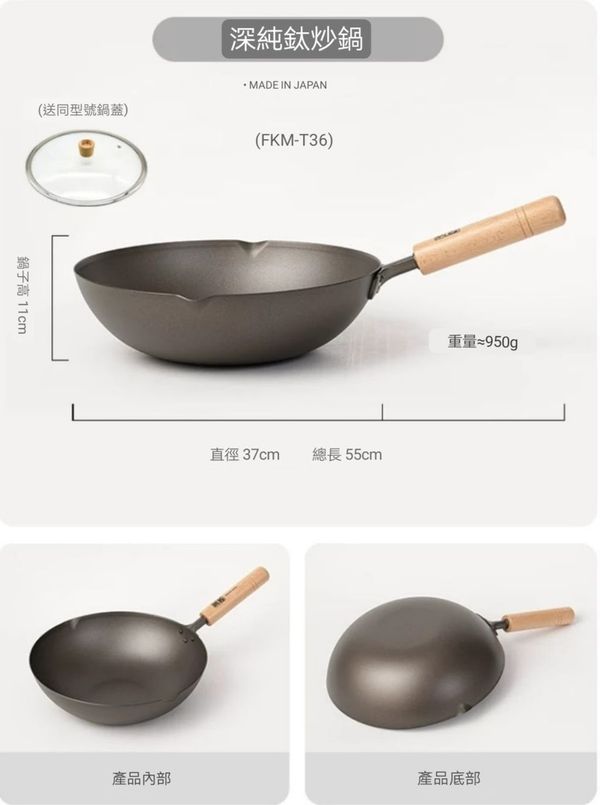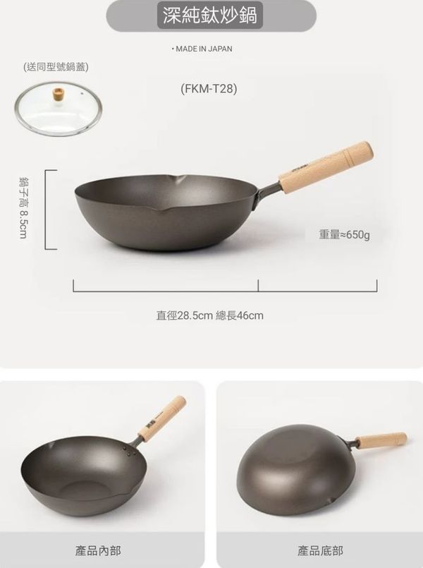 日本深味FUKAMI純钛炒鍋炒鑊超輕钛鍋钛鑊炒菜鍋不粘鍋無塗層鍋炒菜鑊不粘鑊無塗層鑊平底鑊平底煎鑊30CM titanium Wok pot 產地:日本(送:蓋)