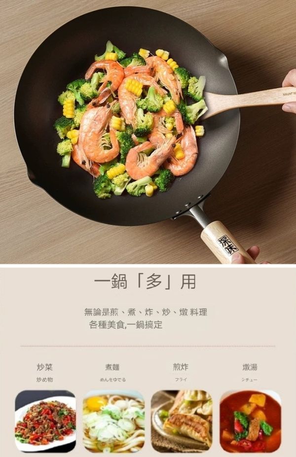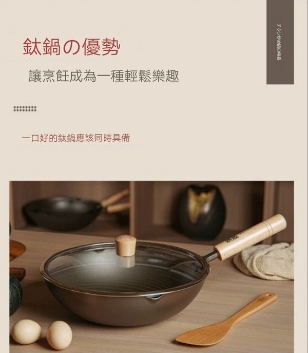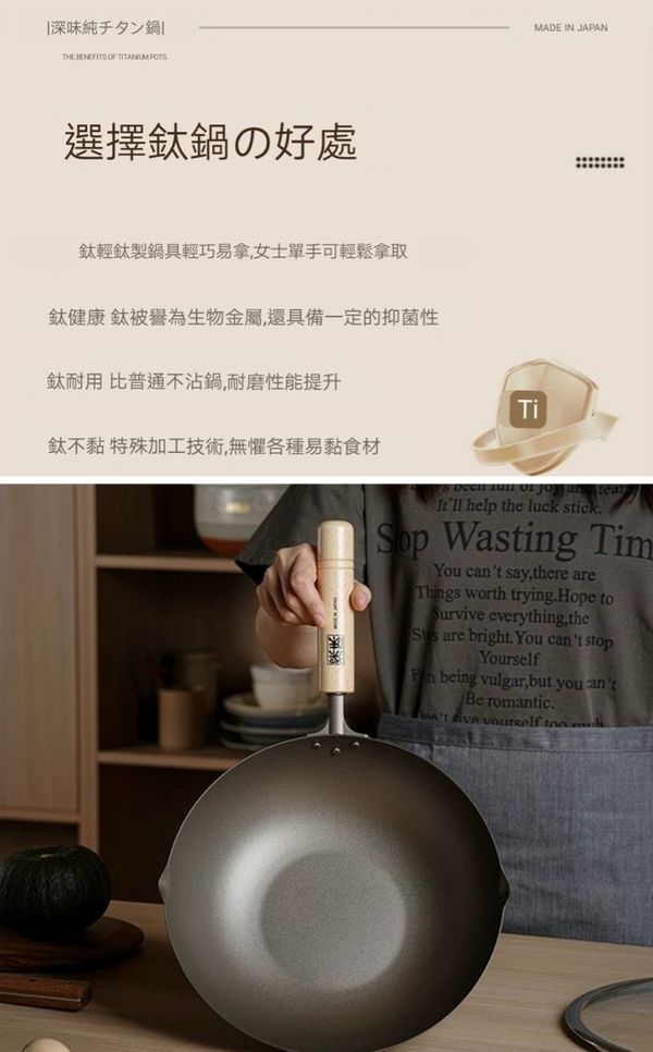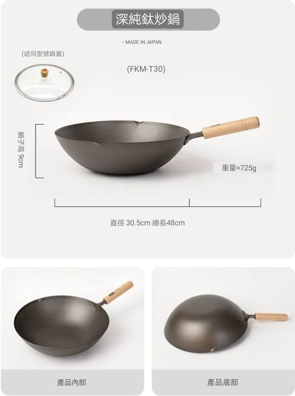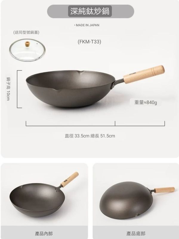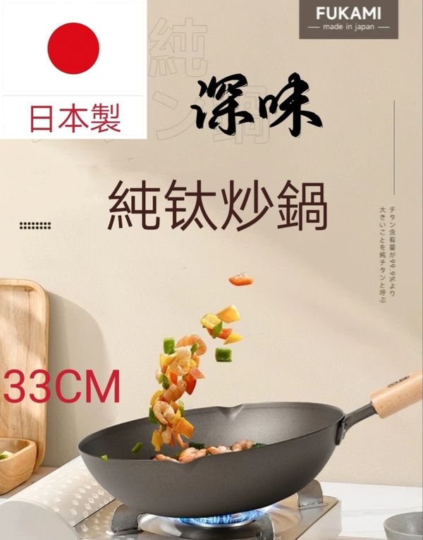 日本深味FUKAMI純钛炒鍋炒鑊超輕钛鍋钛鑊炒菜鍋不粘鍋無塗層鍋炒菜鑊不粘鑊無塗層鑊平底鑊平底煎鑊33CM titanium Wok pot 產地:日本(送:蓋)