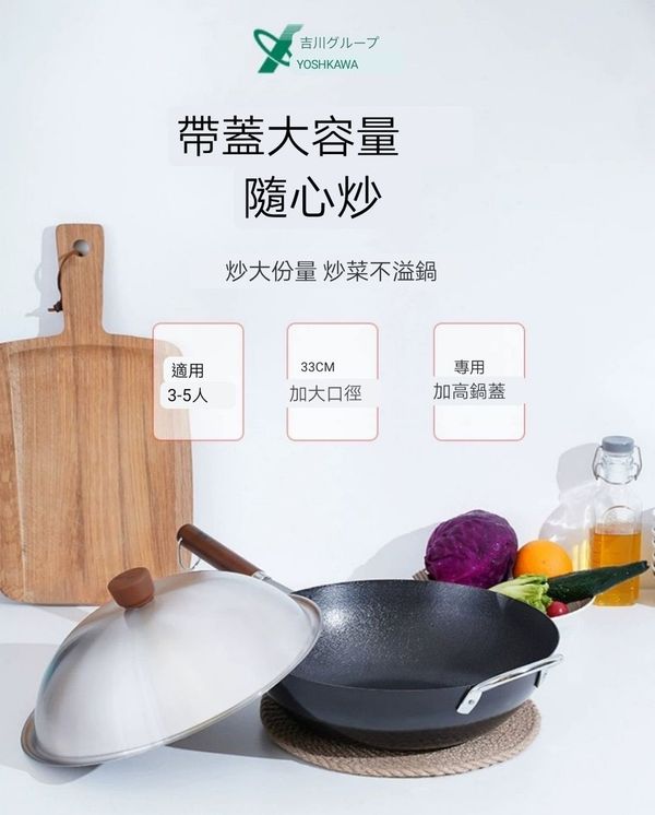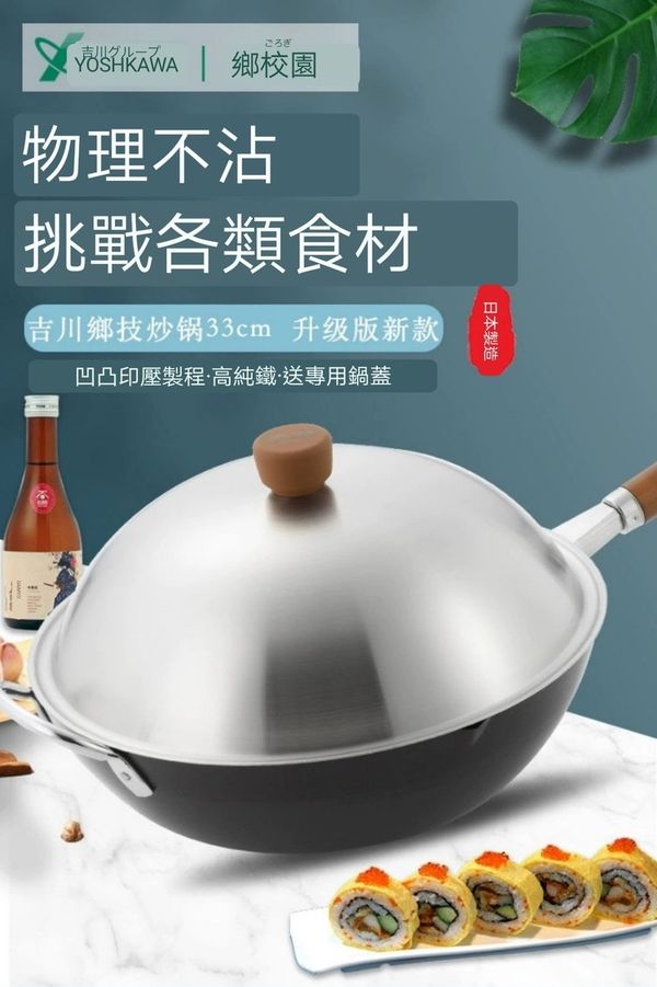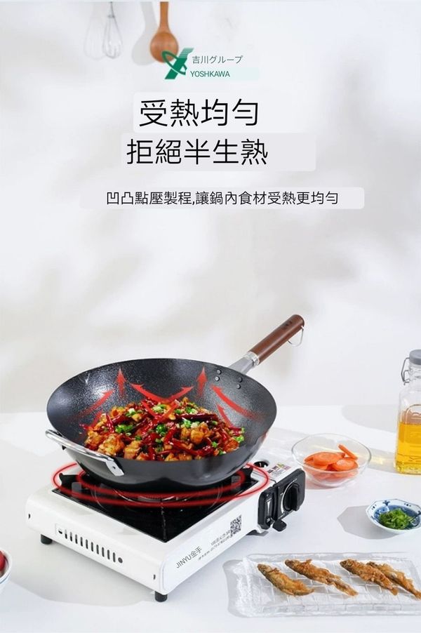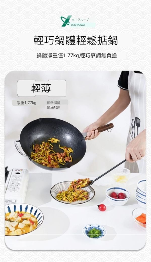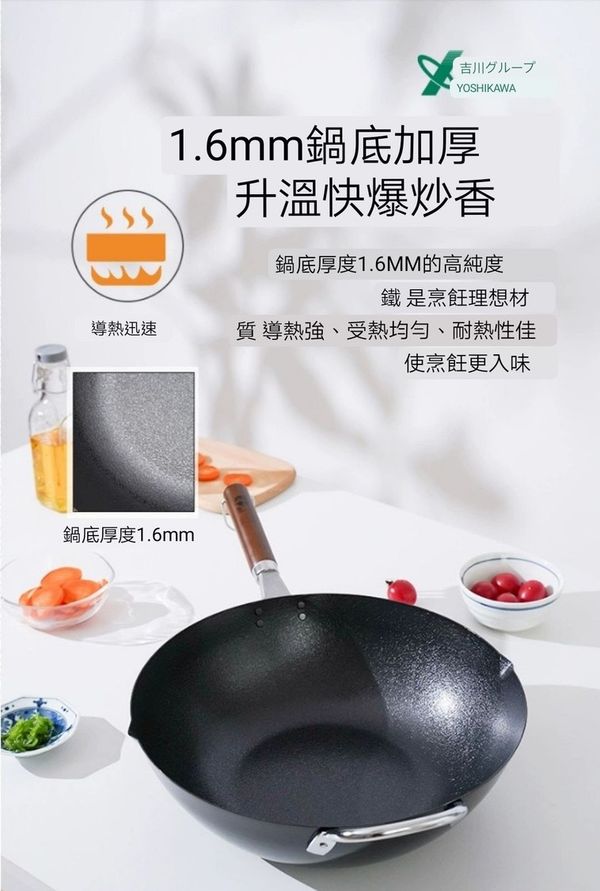 日本吉川YOSHIKAWA 鄉技系列高純鐵鍋炒鍋平底鑊平底鍋平底煎鑊平底煎鍋不黏鍋鐵鑊中式鑊不黏鑊無塗層鑊iron wok Chinese wok 36CM產地:日本 (30CM*33CM可選
