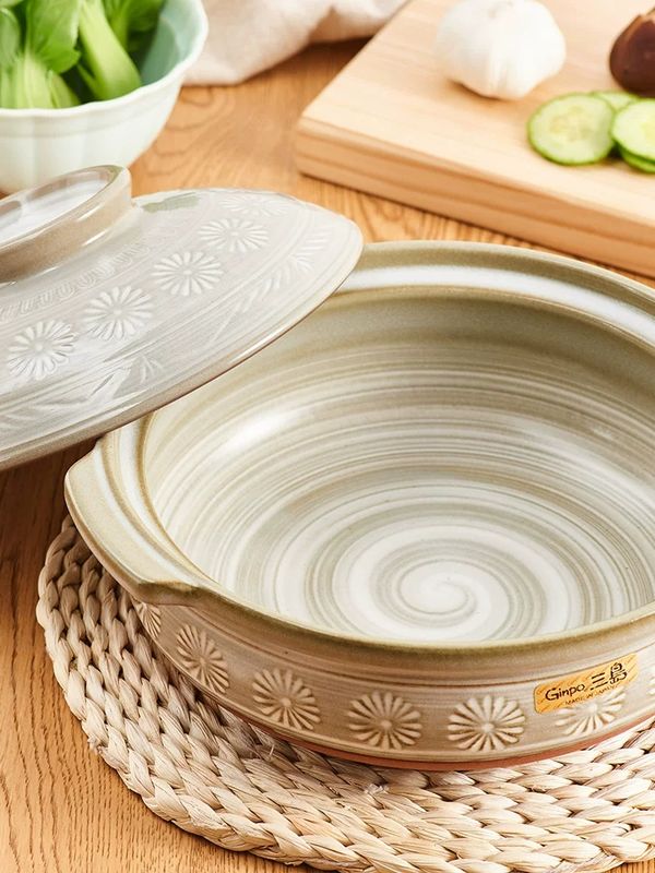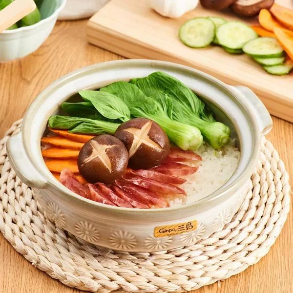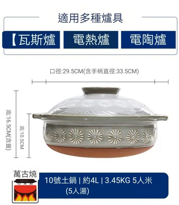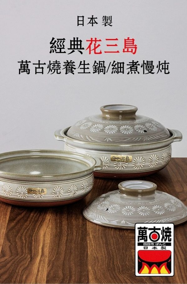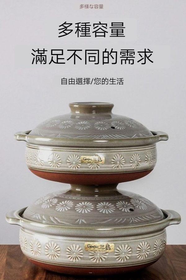 日本Ginpo花三島萬古燒土鍋陶土鍋米飯煲煲仔飯煲瓦煲砂煲8號2.2L明火專用款banko ware casserole pot//產地:日本 pot