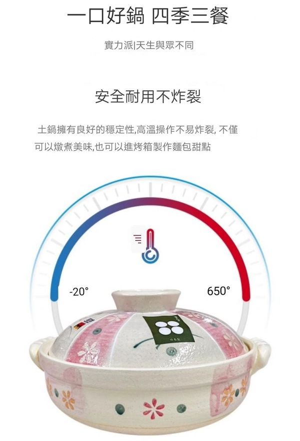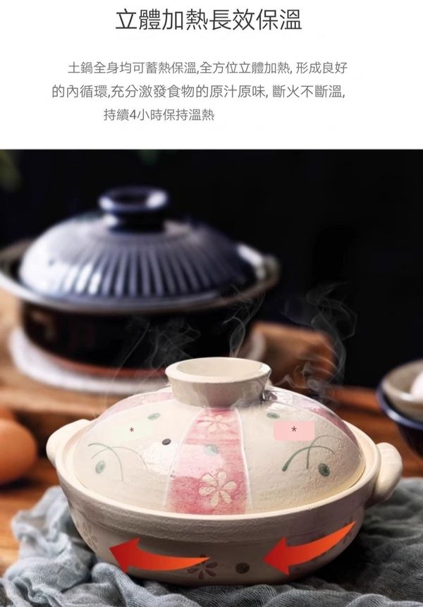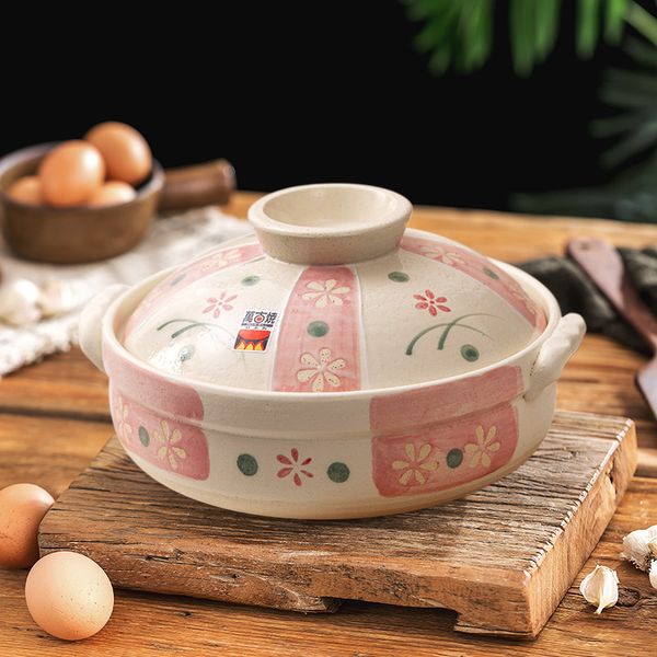日本花見草萬古燒砂鍋米飯煲煲仔飯煲土鍋瓦煲砂煲9號3L Casserole clay pot//產地:日本