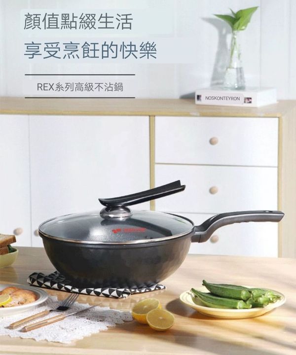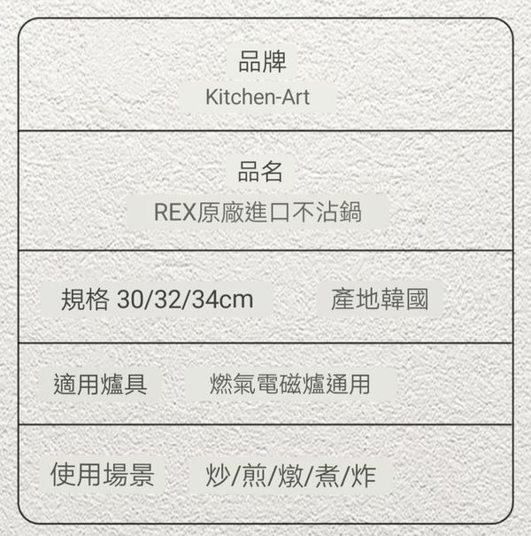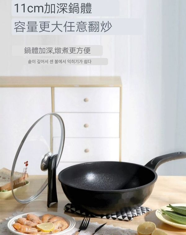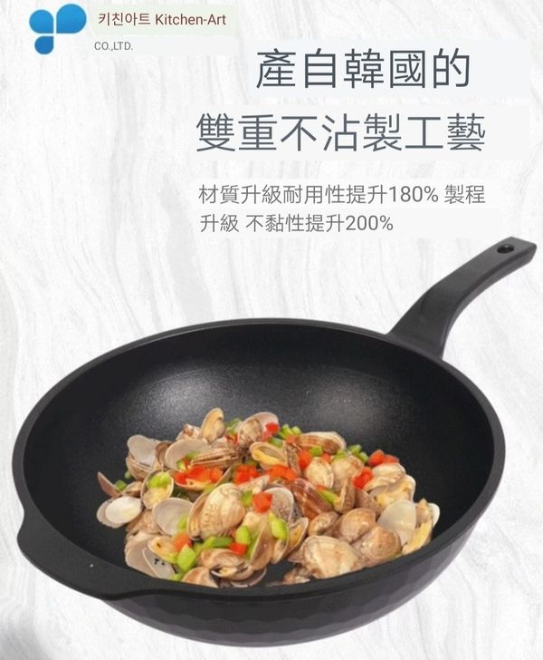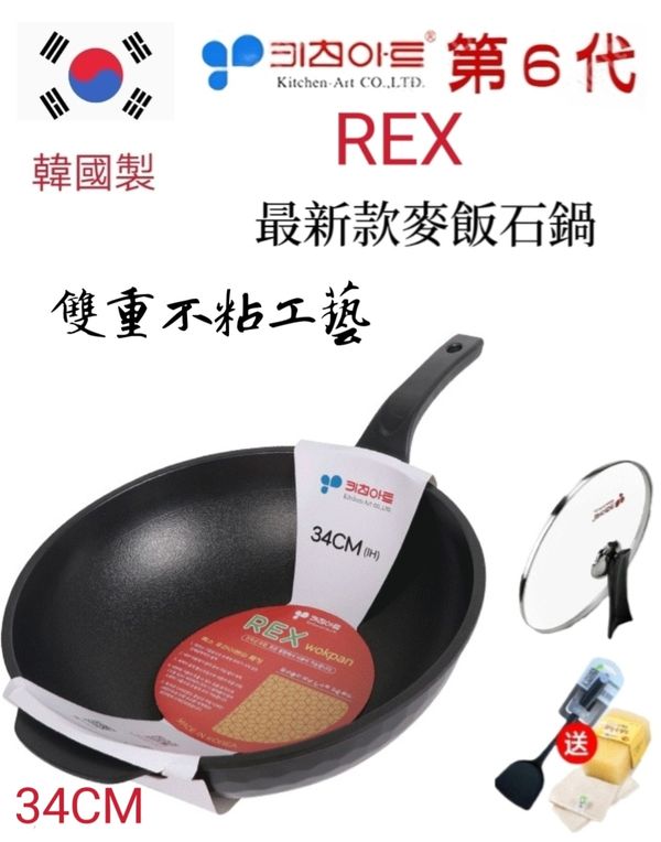 韓國kitchen -Art 第6代REX麥飯石炒鍋炒鑊平底煎鑊平底鑊平底鍋平底煎鍋不粘鍋不粘鑊易潔鍋麥石鍋電磁燃氣通用鍋34CM medical stone pot wok產地:韓國(贈:蓋+鏟)