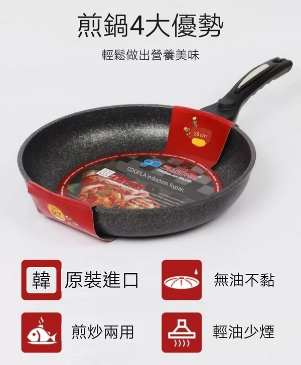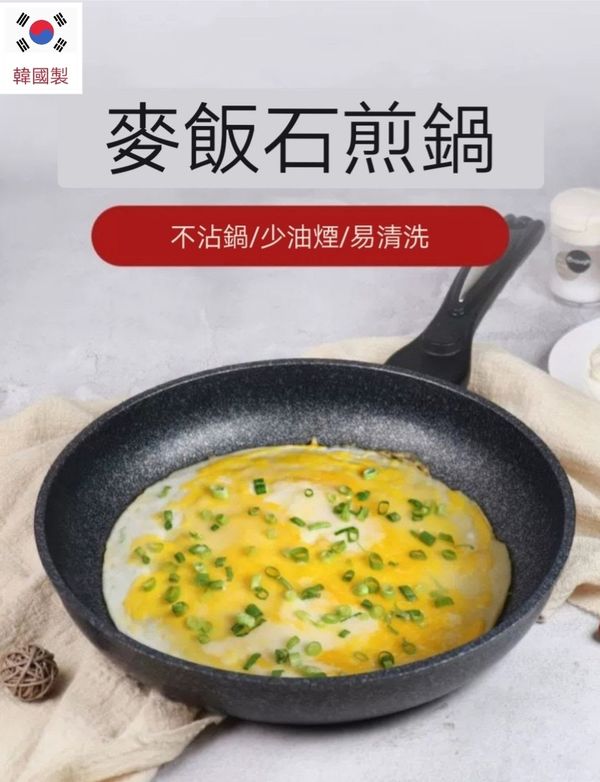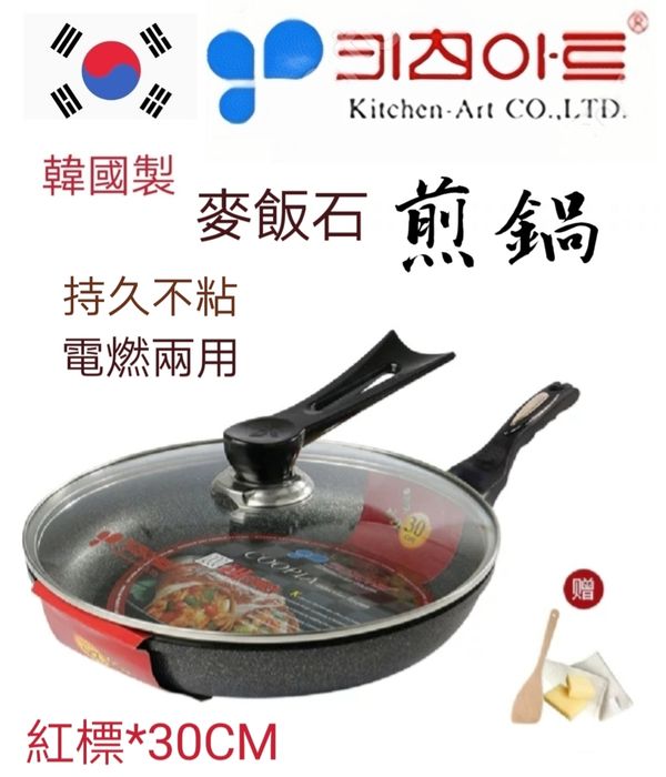 韓國kitchen -Art 麥飯石煎鍋煎pan炒鍋炒鑊平底煎鑊平底鑊平底鍋平底煎鍋不粘鍋不粘鑊易潔鍋麥石鍋電磁燃氣通用鍋紅標30CM maifanitum pot wok產地:韓國(贈:蓋+鏟)