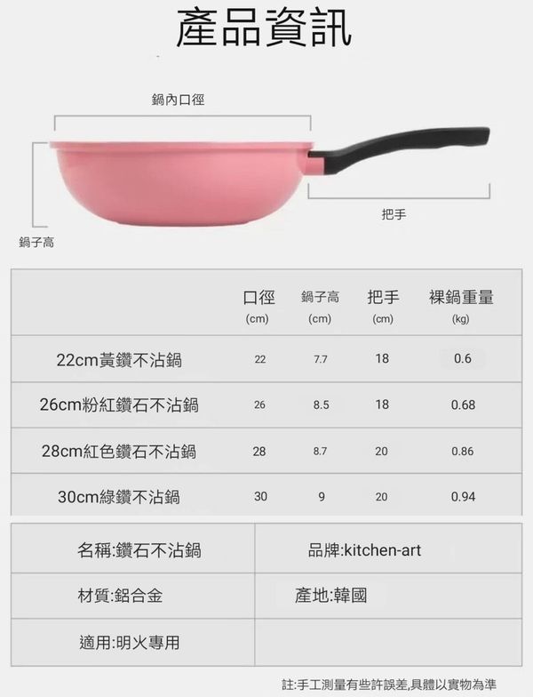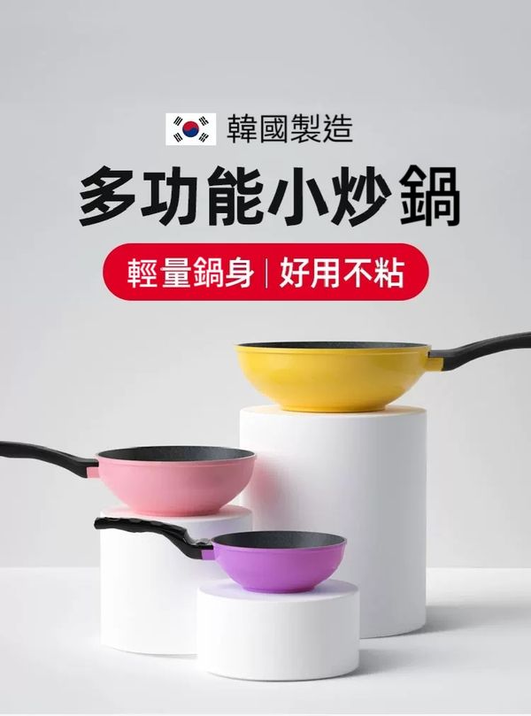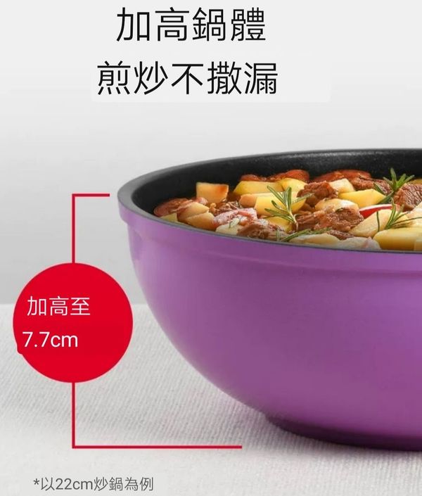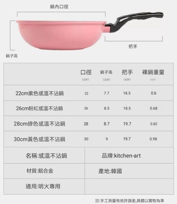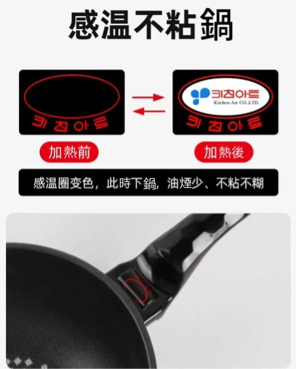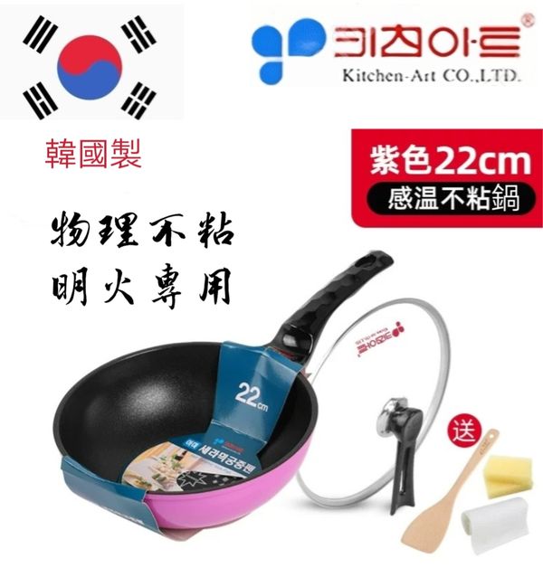 韓國kitchen -Art 多功能感溫款小炒鍋煎pan小炒鑊平底煎鑊平底鑊平底鍋平底煎鍋不粘鍋不粘鑊易潔鍋燃氣明火專用鍋紫色22CM frying pot wok產地:韓國(贈:蓋+鏟)