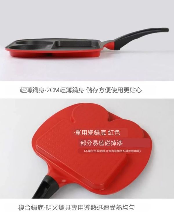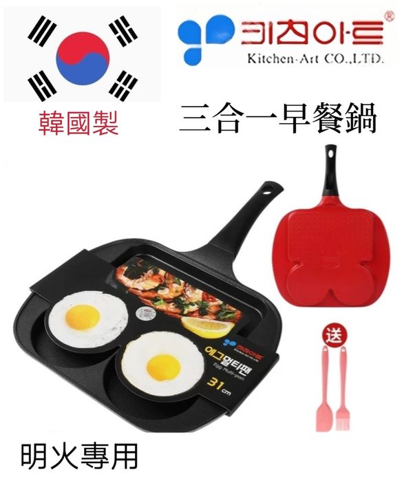 韓國kitchen -Art 三合一早餐鍋不粘鍋煎鍋煎Pan平底煎鑊煎蛋鍋多功能鍋燃氣專用紅色breakfast pot pan 產地:韓國(送:鏟)