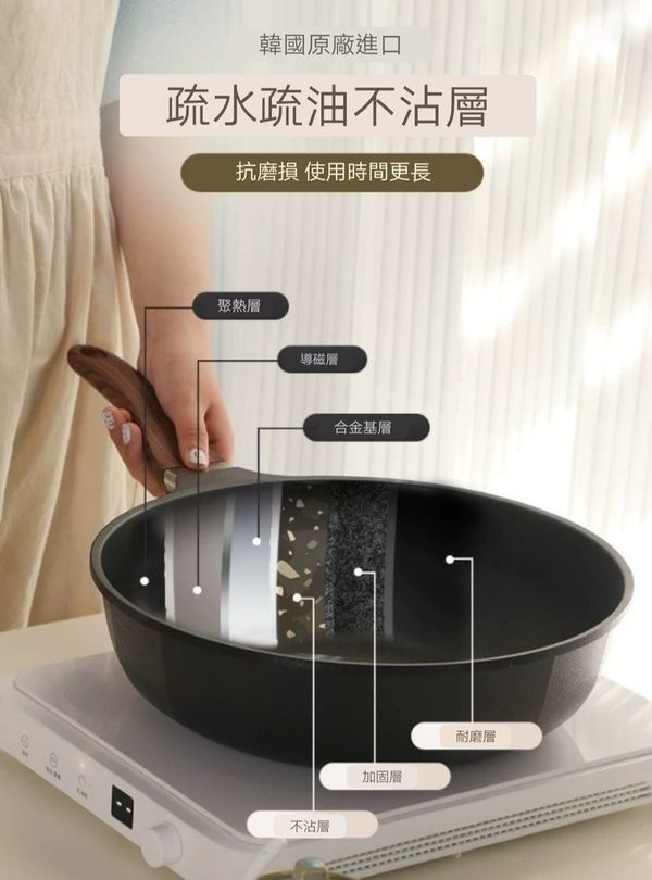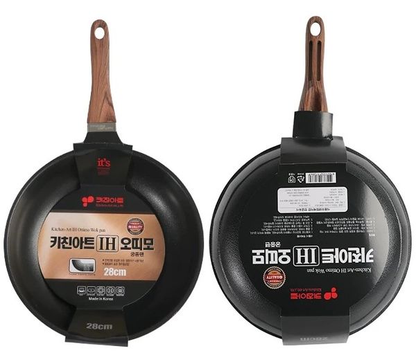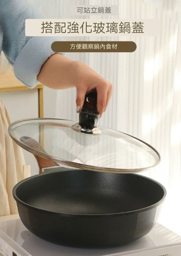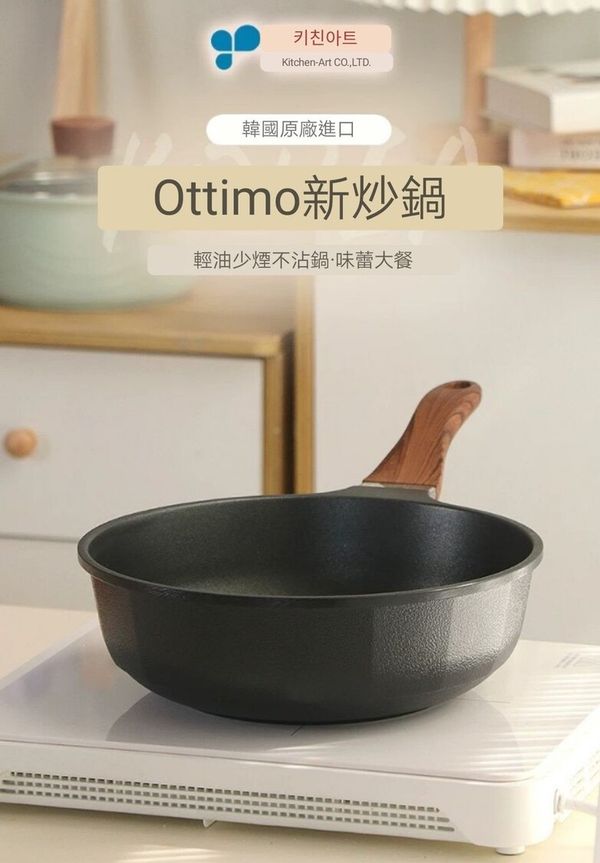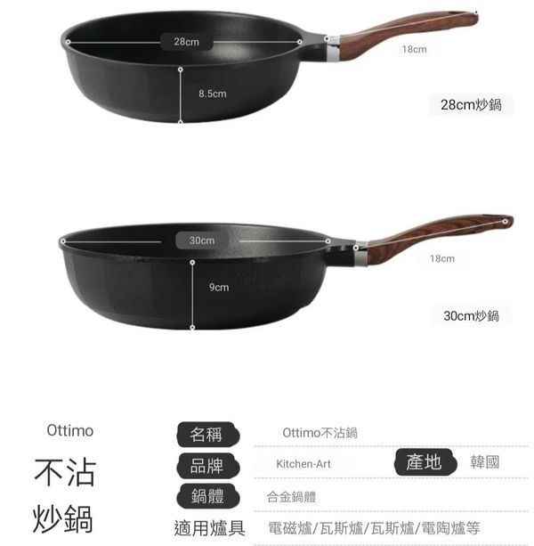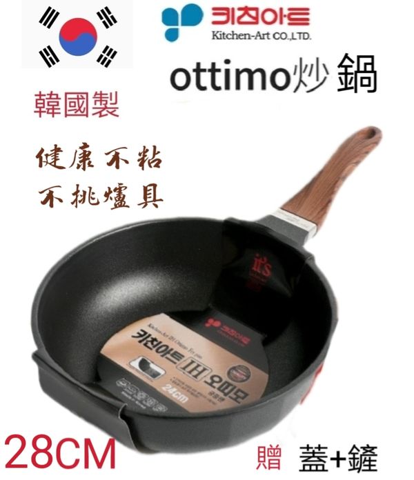 韓國kitchen -Art ottimo炒鍋煎pan炒鑊平底煎鑊平底鑊平底鍋平底煎鍋不粘鍋不粘鑊易潔鍋電磁燃氣通用鍋28CM frying pot wok產地:韓國(贈:蓋+鏟