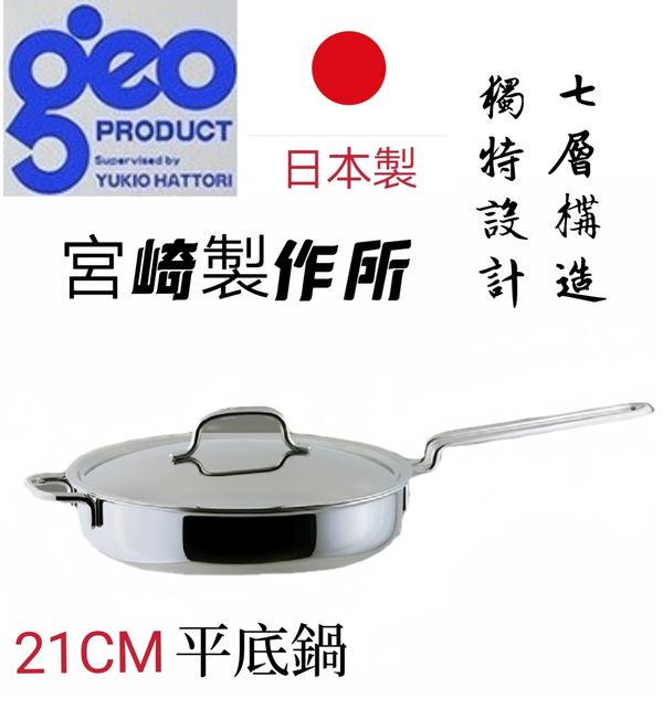 日本宮崎GEOproduct 系列七層不鏽鋼復合鍋行平鍋單柄鍋湯鍋奶鍋煮麵鍋雪平鍋片手鍋平底煎鍋平底鍋21CM one-handed pot pan saucepan/產地:日本