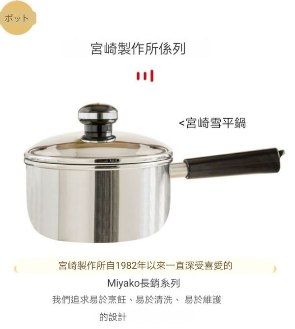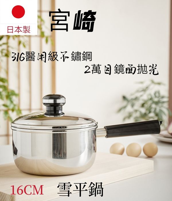 日本宮崎miyaco三層不鏽鋼復合鍋無塗層鍋湯鍋奶鍋單柄鍋煮鍋雪平鍋16CM yukihira pot one-handed pot/產地:日本