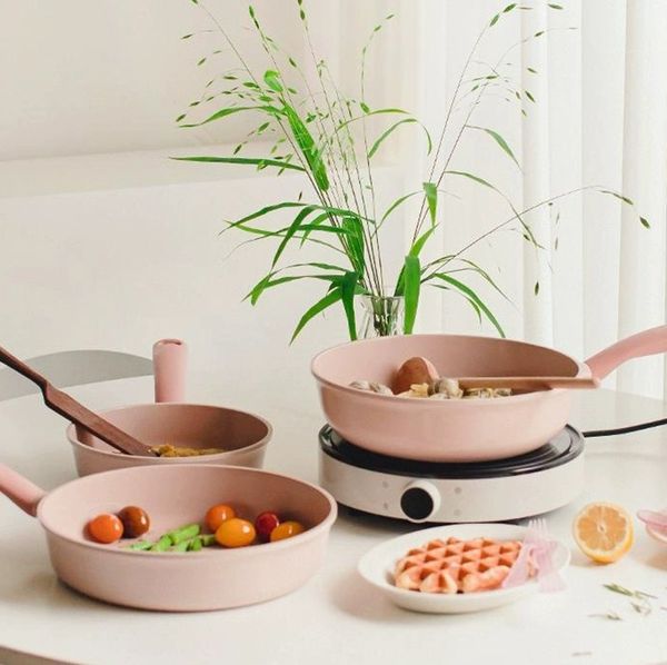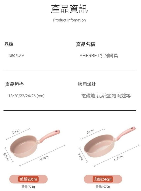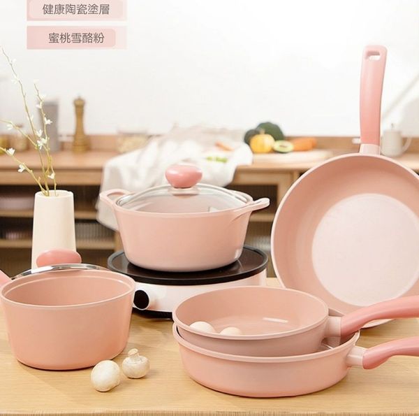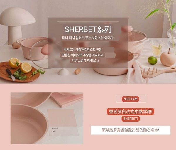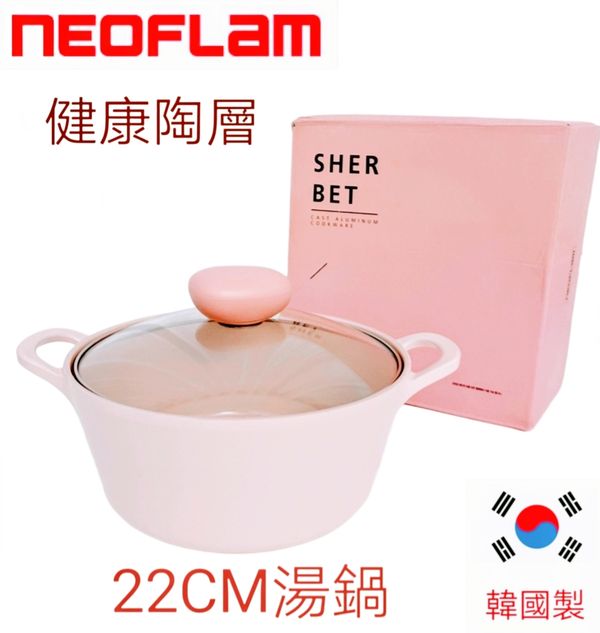 韓國neoflam sherbet 系列粉色天然陶瓷鍋鑊奶鍋湯鍋煎鍋炒鍋湯煲電磁爐燃氣爐適用鍋煮麵鍋22cm湯鍋ceramics soup pot wok fry pan /產地:韓國(送:矽膠勺)
