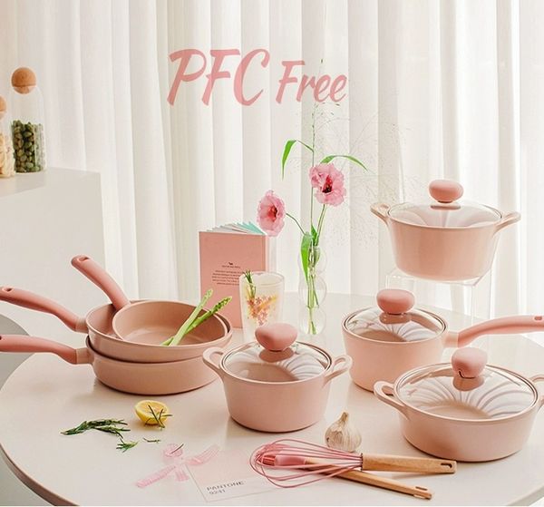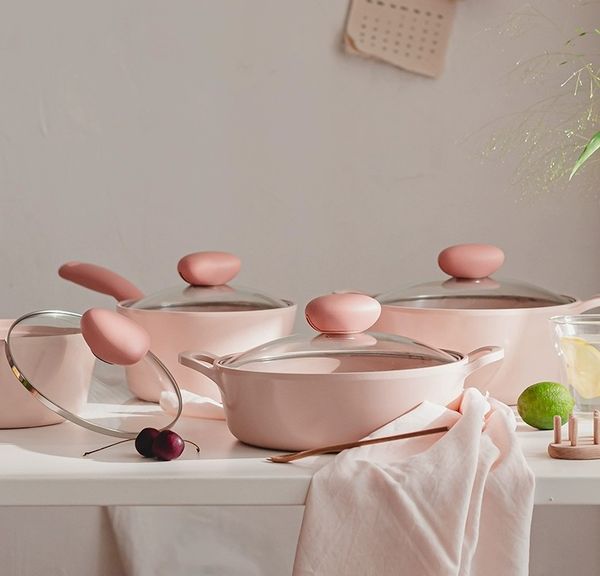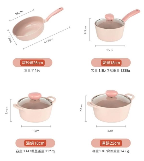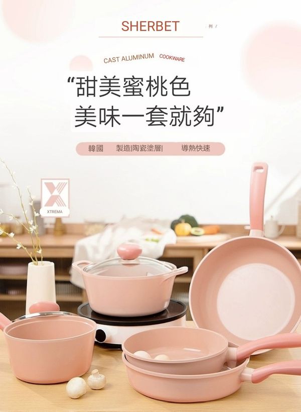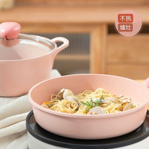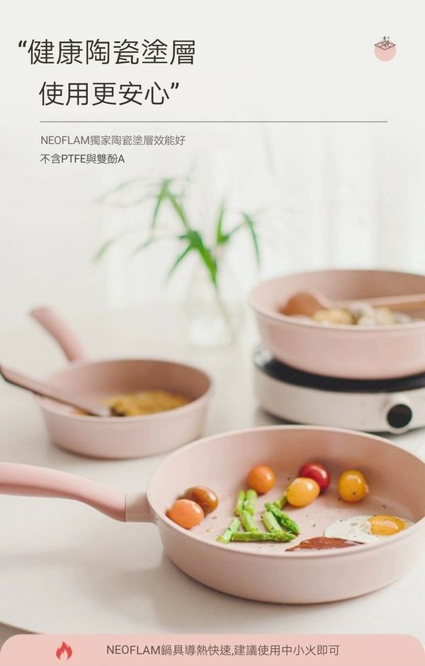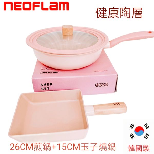 韓國neoflam sherbet 系列粉色天然陶瓷不黏鍋鑊奶鍋湯鍋煎鍋炒鍋湯煲煮麵鍋煎pan 2件組 pot square pan(26cm煎鍋+FIKA玉子燒鍋15cm)產地:韓國(送矽膠鏟)