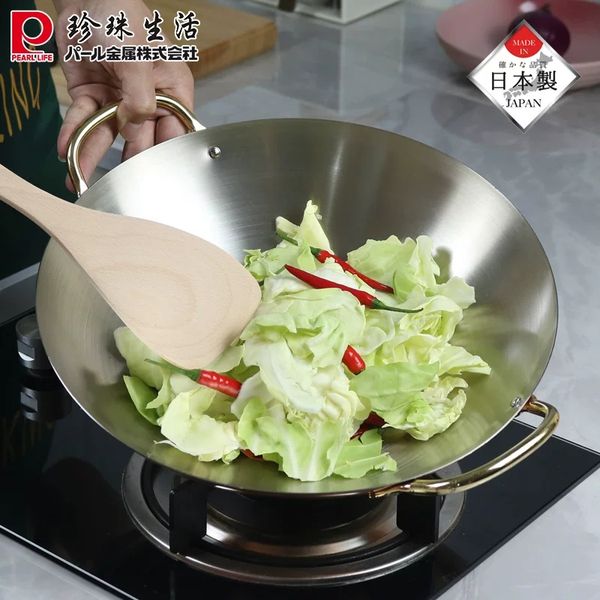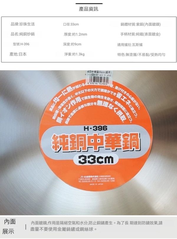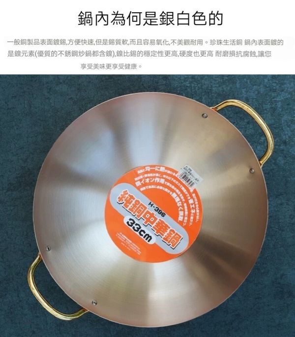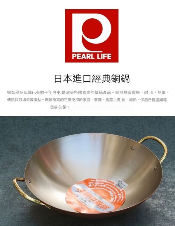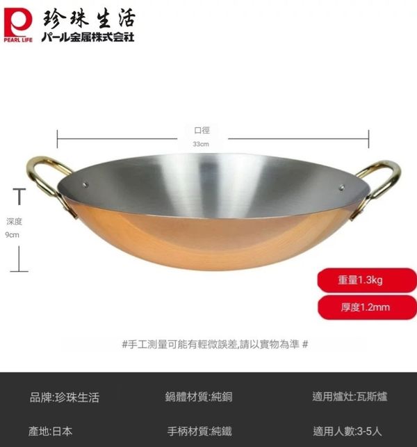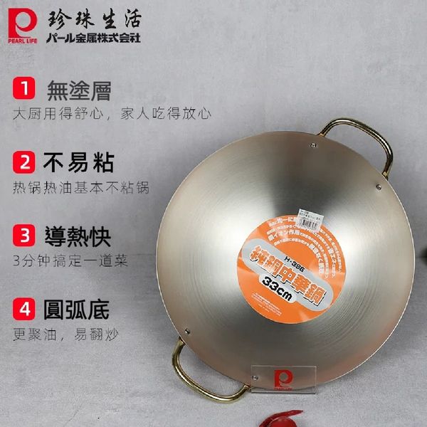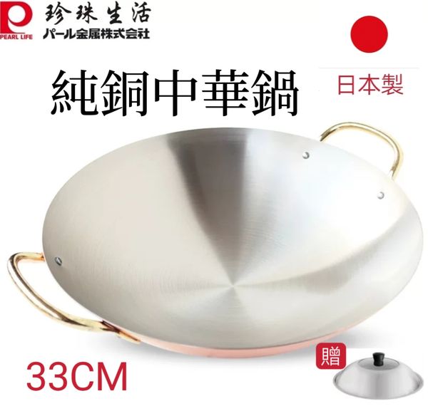 日本製pearl life 珍珠生活純銅圓底炒鍋銅炒鑊銅鍋銅鑊銅炒鍋銅中華鍋中式炒鍋中式鑊中華鑊33CM copper Chinese wok pot//送:不銹鋼蓋