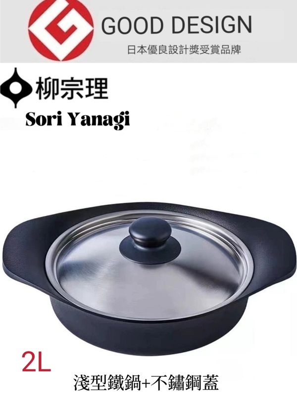 日本柳宗理sori Yanagi 南部鐵器平底湯鍋平底煎盤平底煎鑊鑄鐵鍋不粘無塗層鍋双耳炖鍋生鐵鍋煎PAN鍋牛排煎鍋淺型炖鍋2L(不鏽鋼蓋)nambu tekki soup pot 產地:日本